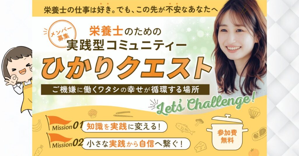 また、栄養士コミュニティ「ひかりクエスト」では、